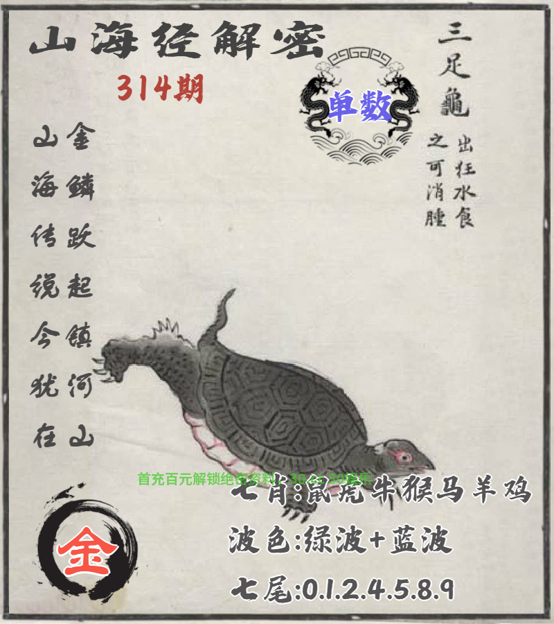 314期:天机单双【单单单单】开:羊23中